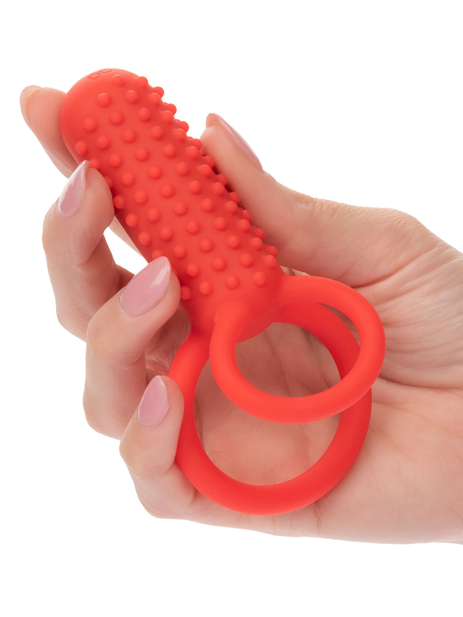 The rings in soft and bodysafe silicone improve endurance, maximize sensitivity and provide a stronger erection that you can both enjoy. In addition, the vibrations and the knobby stimulator will stimulate your partner to orgasmic feelings. Of course, you will also be stimulated by the vibrations.