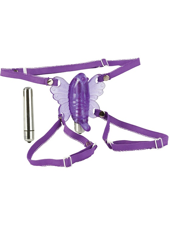You have adjustable and elastic straps that rest around the hip and allow you to enjoy your fun "handsfree". They also keep the butterfly in place if you want to discreetly stimulate yourself during inappropriate times such as at work, while traveling or whatever you can think of. The straps can also be removed from the butterfly if desired.