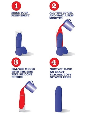 The kit contains everything you need to make a perfect silicone-copy of your penis, alone or together with your partner. Fits all looks and most sizes.