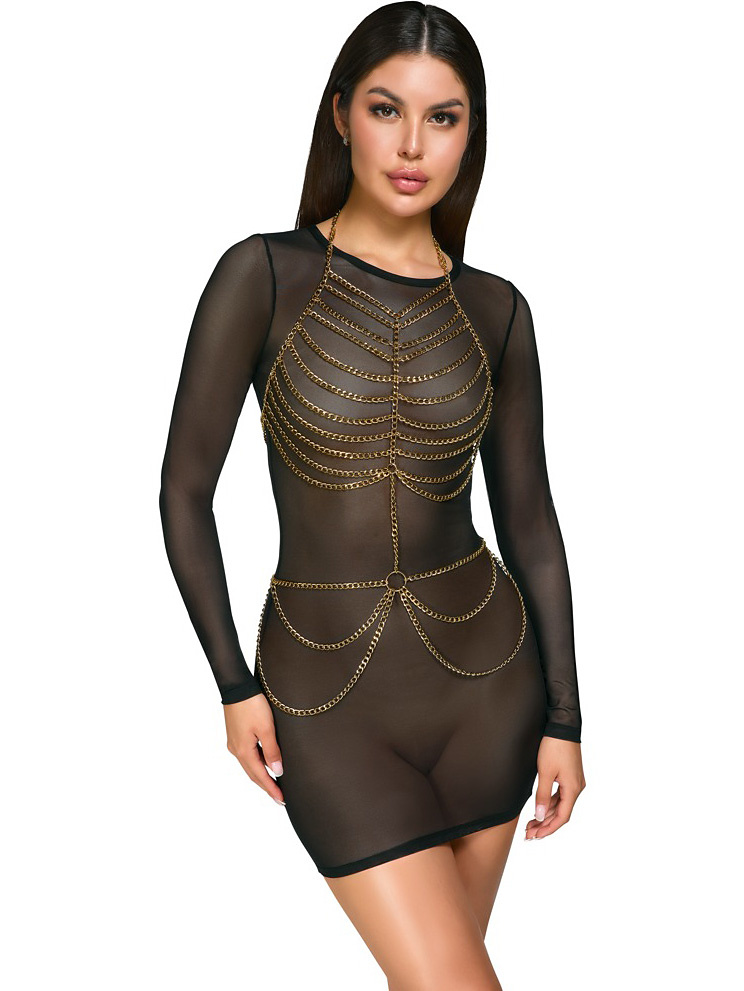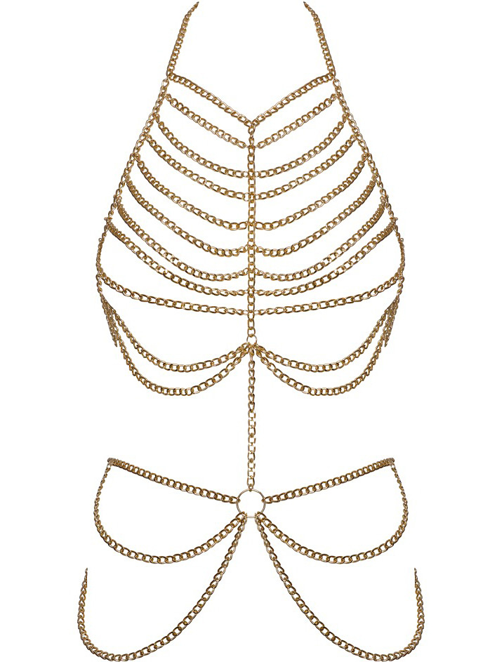 It can be worn on its own on the naked body for an erotic look but also combined with swimwear or tight outfits. The body chain will always be a captivating eye-catcher.