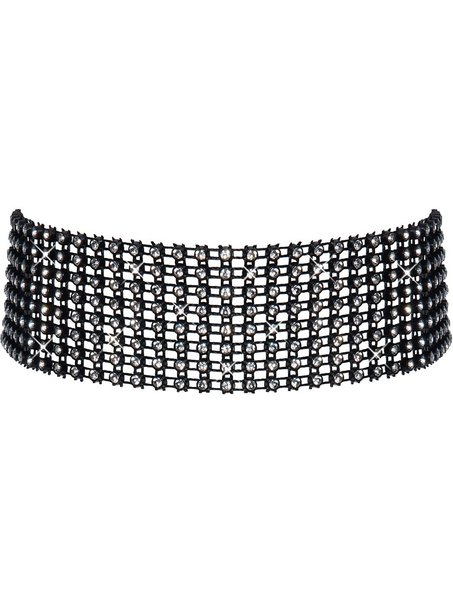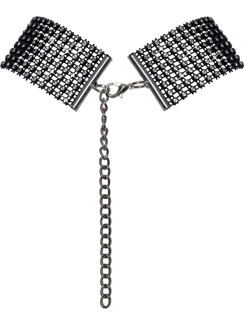 This is a black choker from Cottelli Accessoires that is covered with many small rhinestones for a sparkling look. It is 3 cm wide and sits comfortably around the neck. With a chain and carabiner at the back, you can easily adjust the fit.