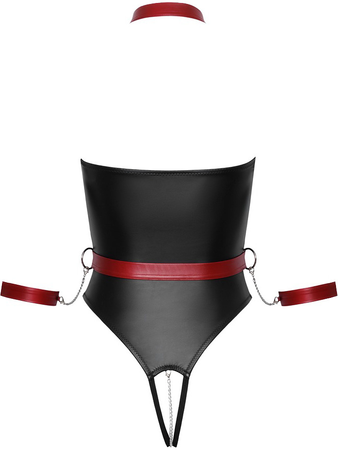 This is a sexy Body in a matte black and stretchy material that embraces your bodyshapes. The body is strapless and has an open design between the legs that leaves your most intimate parts bare. Between the legs runs a stimulating chain that gives extra passion but can also be removed if desired.
