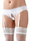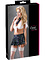 The white top is tied between the breasts and at the sleeves. The panties have inviting openings and suspenders so you can combine the outfit with sexy stockings.