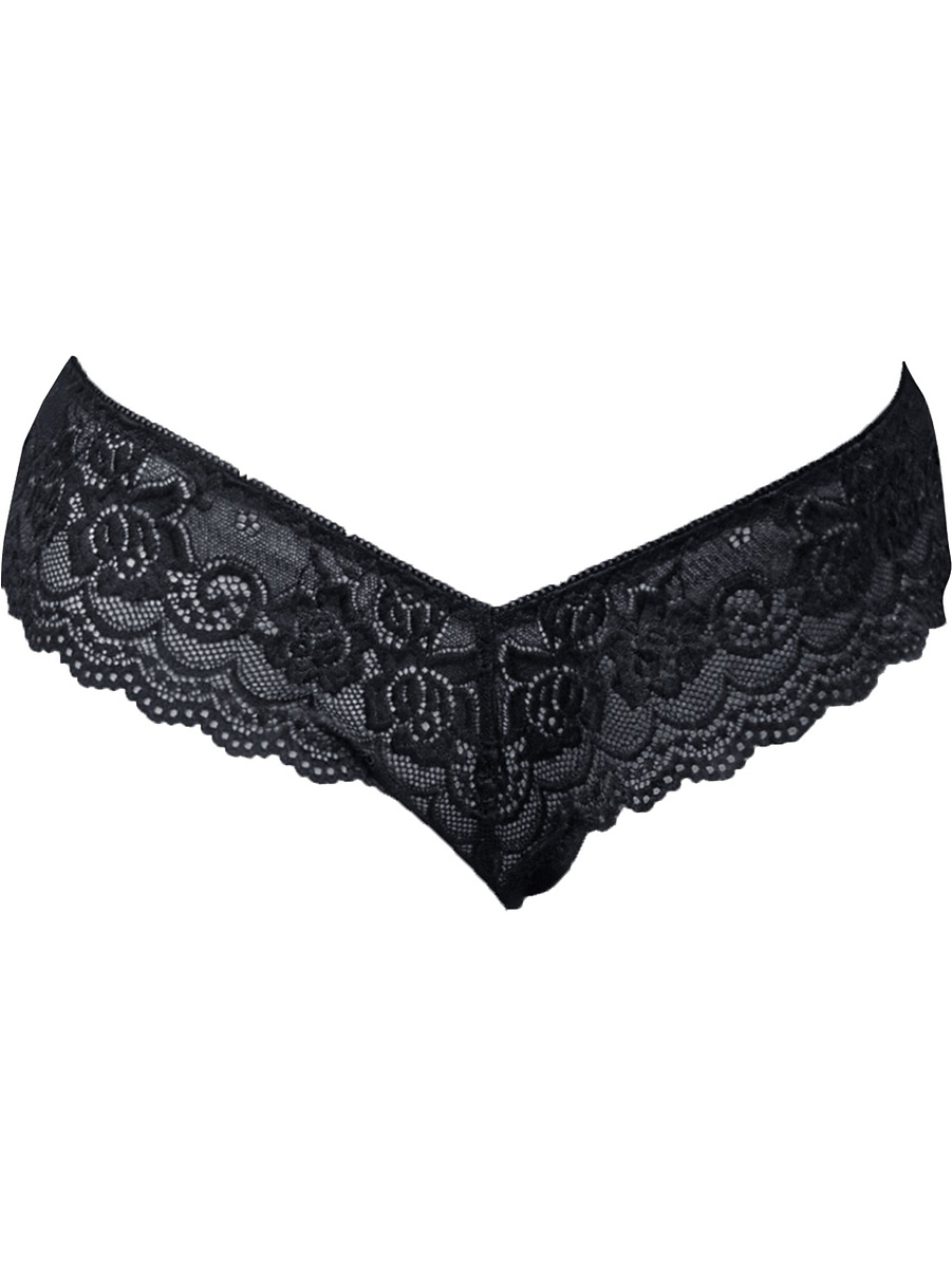 Black lace panties with a low design. The stretchy lace-material means that the panties fit fantastically well and are very comfortable to wear. In the crotch area there is a soft and comfortable material.