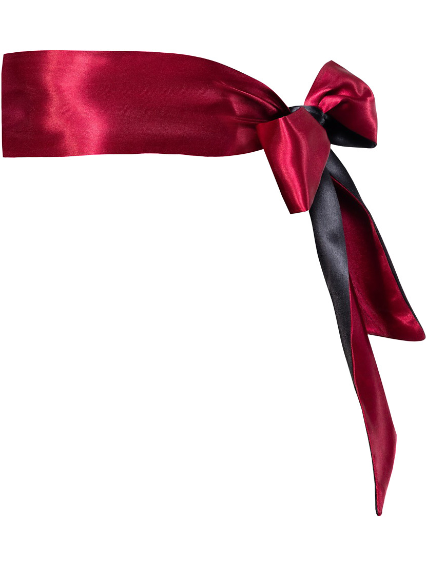 The scarf is made of 100% polyester with a soft, glossy satin feel that caresses the skin without chafing. It is burgundy on one side and black on the other, making it as elegant as it is practical. At 150 cm in length and 6 cm in width, it is perfect for using as a blindfold or for tying wrists in a soft but effective way.