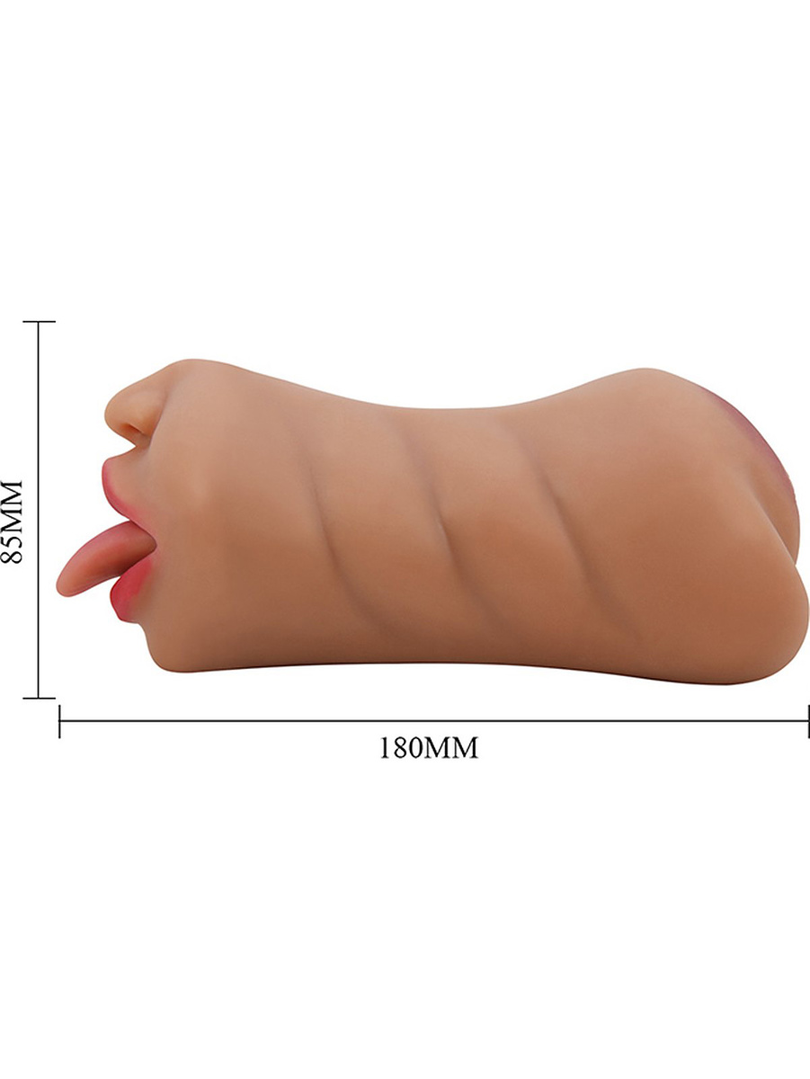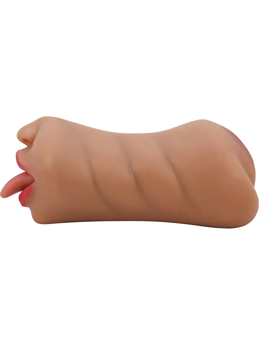 Sarah is a handheld masturbation-product with two different openings for varied stimulation and pleasure. On one end is a realistic vagina with a flexible and textured interior that stimulates your penis nicely. On the other end you will find an oral opening that stimulates like a comfortable blowjob toy. Grip harder for an even tighter feel.