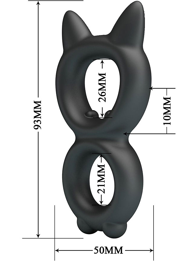 The distinctive shape with cat-like contours makes the Model 20 a fun yet effective model. The two rings allow it to be worn both around the shaft of the penis and the scrotum, providing extra pressure and stimulating sensation where it is needed most.