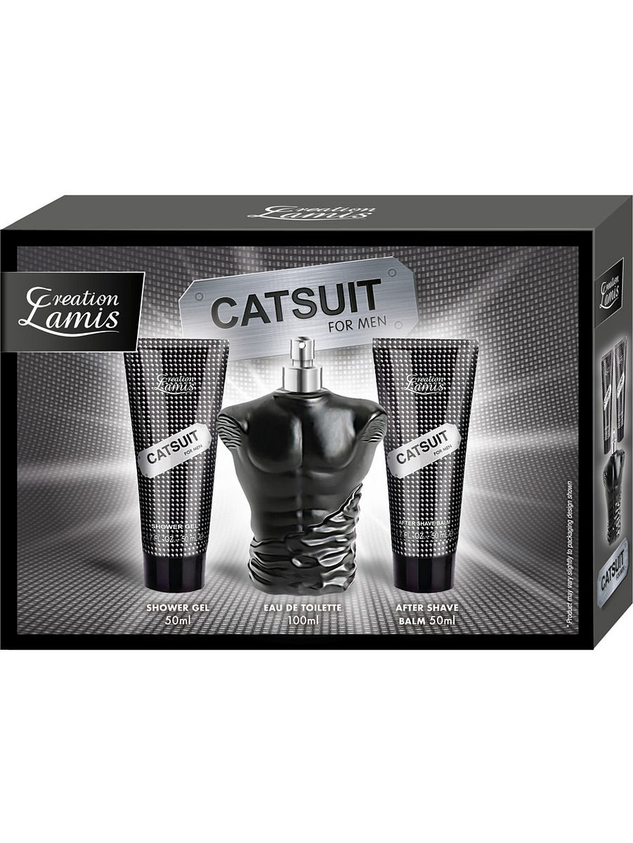 It contains the perfume Catsuit (Eau de Toilette, 100 ml), After Shave Lotion (50 ml) and shower gel (50 ml). All products have an intense oriental and fresh scent.