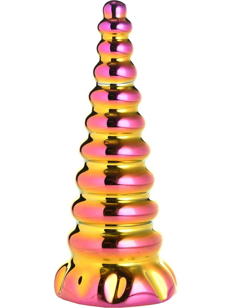 Twilight is a beautiful fantasy dildo made of glass and with a design similar to a mysterious unicorn horn. The golden horn shimmers in all sorts of colors to provide visual satisfaction. The top is narrow for a comfortable entry before getting bigger and bigger the deeper you go.