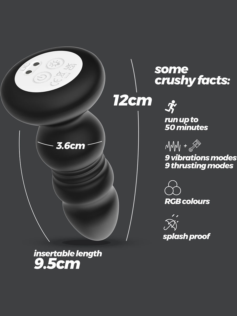 Crushious Australis, Vibrating and Thrusting Anal Plug with RGB LED