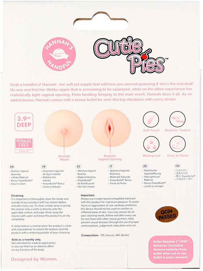 Hannah's Handful is a unique masturbator, designed by women, that combines a full breast with a realistic vagina that you can penetrate. The soft and realistic TPE-material gives an incredibly real feeling, the feeling is extra nice together with water-based lubricant.