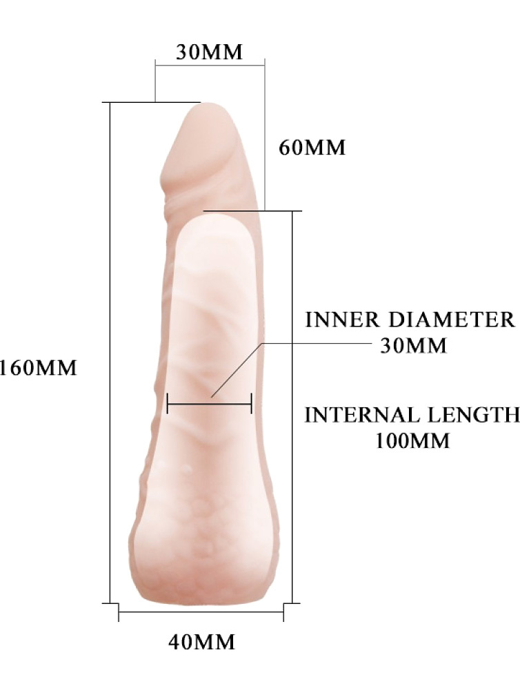 The solid top extends your penis by 6 cm. For a perfect fit, you can easily cut the sleeve to the desired length.