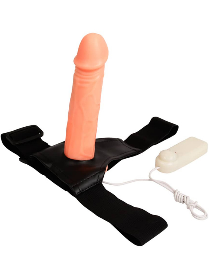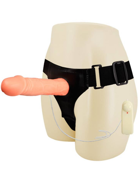 Jessica Strap On has a hollow dildo and an elastic and adjustable strap-on harness that fits comfortably around the hips. The dildo has a realistic design with a marked glans and pulsating veins. The inner length is approximately 9 cm.