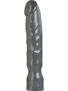 The dildo is made from metallic gray PVC and enhanced with Doc Johnson’s antibacterial Sil-A-Gel™, making it hygienic, durable, and bodysafe. It’s also compatible with the Vac-U-Lock system and can be used with strap-on harnesses or mounted to flat surfaces for handsfree play.
