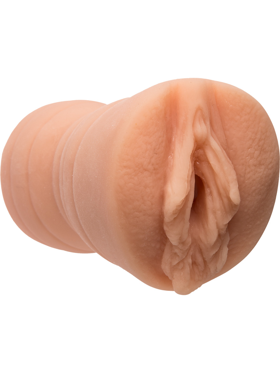 This masturbator is made of the very realistic material Ultraskyn which gives a real feeling while the textured tunnel stimulates your penis when you penetrate it. Apply water-based lubricant, penetrate through the inviting labia, and enjoy. The handheld and compact design provides a perfect grip while you can press harder with your hand for an even tighter feel.