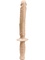 The dildo has a long shaft with thick clear veins and a large marked glans to provide good stimulation. At the bottom, it also has a large "baton-handle" for easier grip and smoother maneuvering.