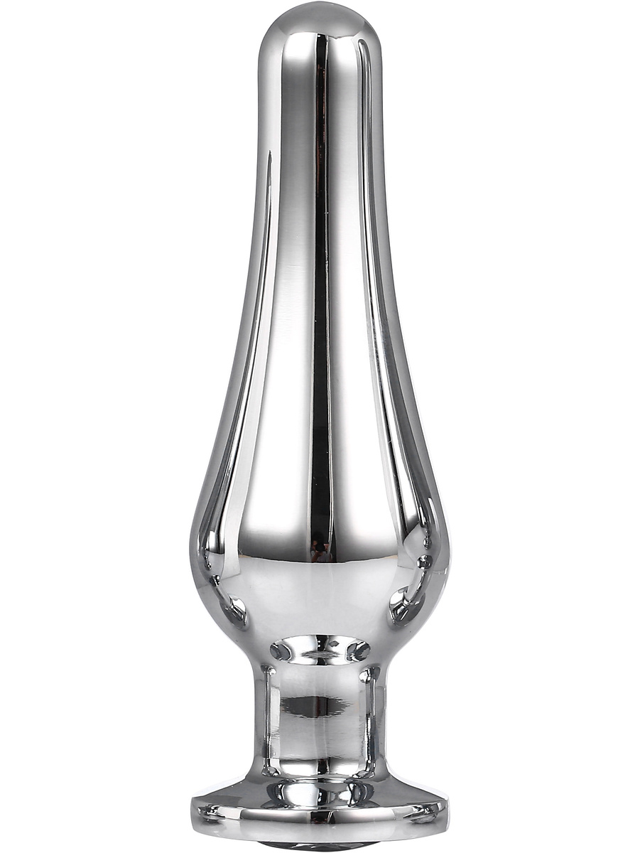 The anal plug has a delicious silver color that matches with the transparent stone at the bottom. It is made of light and seamless aluminum which, together with the long and tapered top, provides a comfortable entry. The wide and round base prevents it from slipping too far in at the same time as the jewelry sits comfortably between the buttocks.