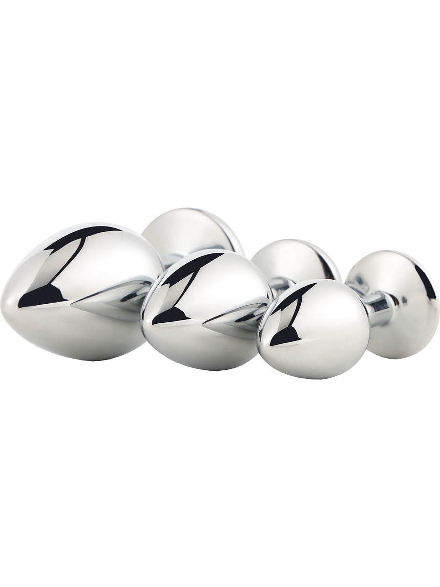 These beautiful anal plugs get an extra luxurious look with the round base and transparent stone. From tip to base, the seamless butt plugs have a lovely sheen that goes wonderfully with the shiny stone. The egg-shaped design with the narrow top means that they slide in comfortably, preferably together with lubricant.