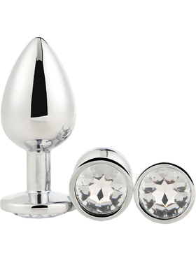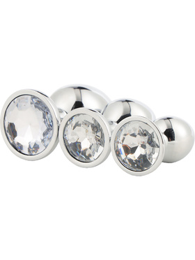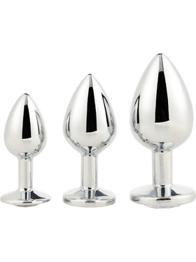 Gleaming Love is the collection that offers fantastically beautiful butt plugs in different sizes. This set gives you three shiny butt plugs in different sizes with a shiny jewel in the base, which makes your plug into a stunning anal-decoration. The butt plugs are in different sizes - perfect if you want to enjoy a varied intensity or practice your anal ability.