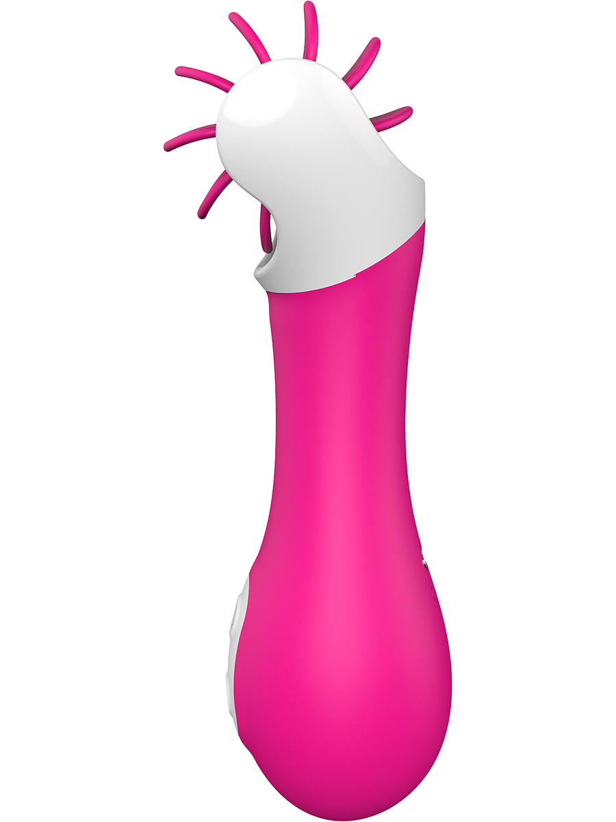 This clitoral vibrator has a rotating wheel with small soft tongues that licks your clitoris and simulates oral stimulation. At the same time, the rounded shaft delivers pleasant vibrations for varied stimulation and different experiences.