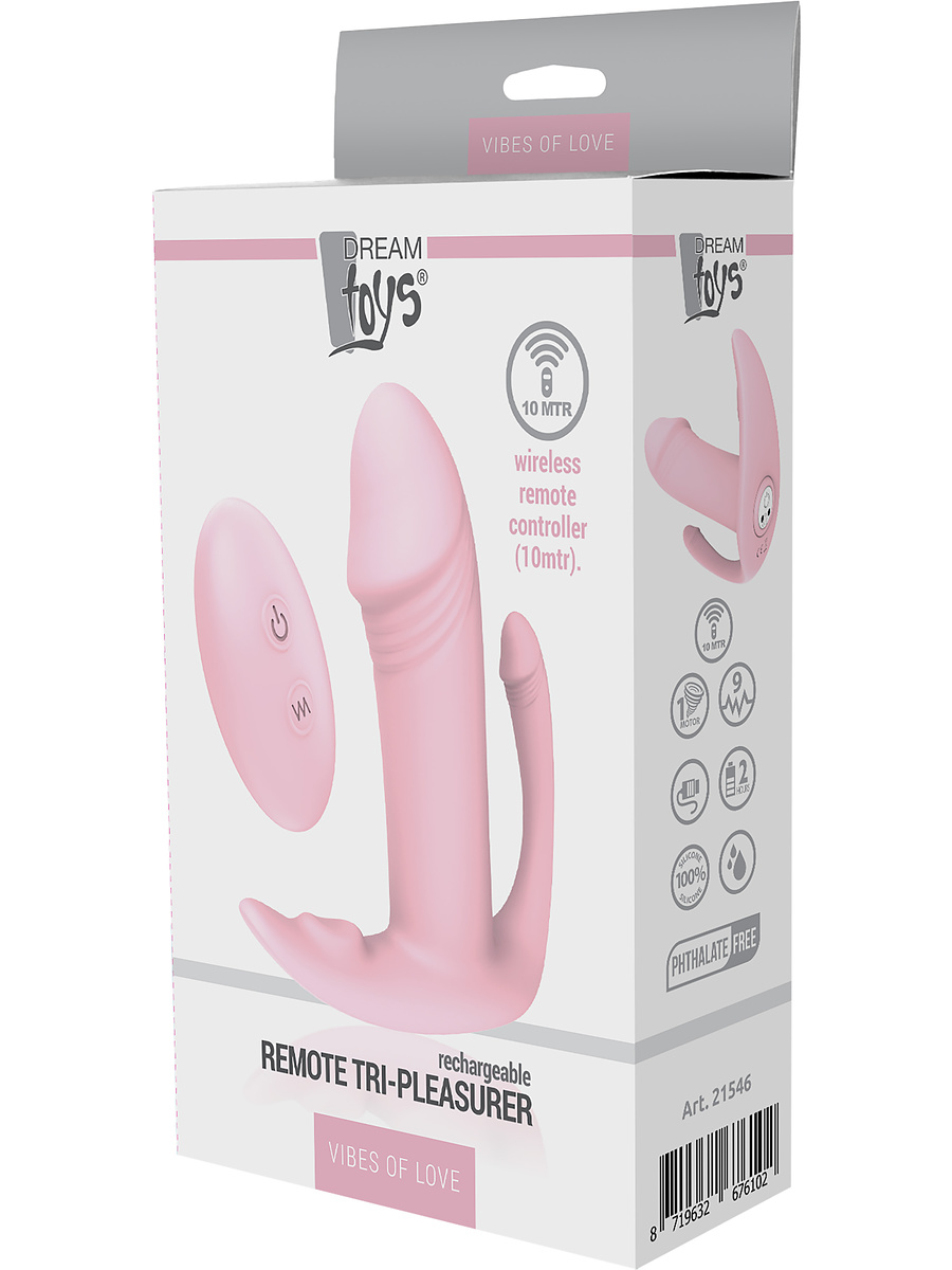 Dream Toys Vibes of Love, Rechargeable Remote Tri-Pleasurer, pink