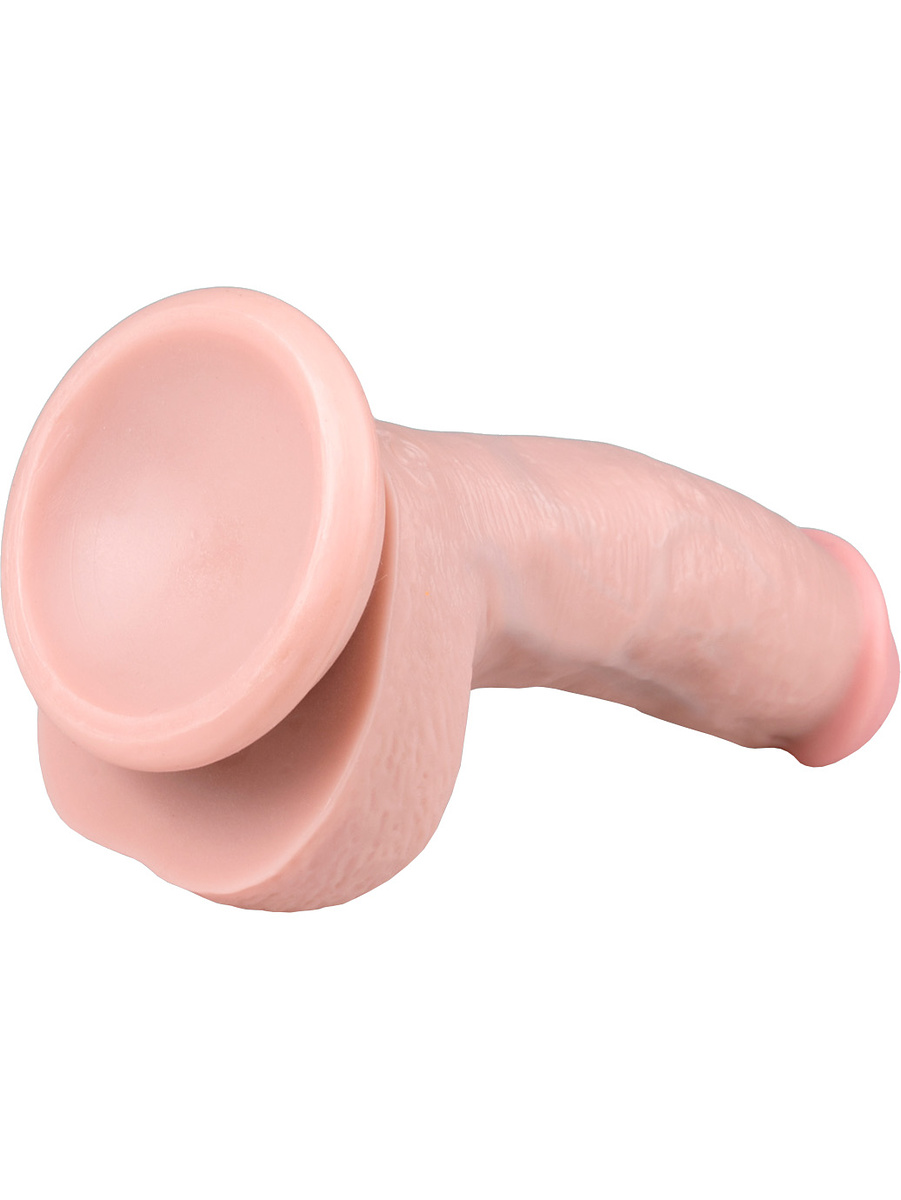 The dildo has a marked, rounded glans that provides a pleasant penetration. The shaft is decorated with pulsating veins that gently massage your insides and further down there is a sexy scrotum that completes the genuine feeling.