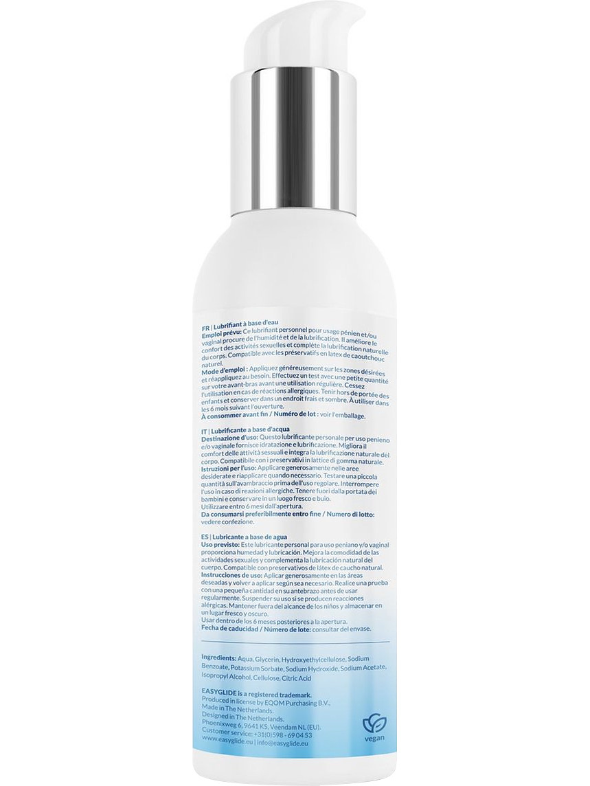 EasyGlide Sensitive is a lubricant specially developed for sensitive skin. This lubricant has a water-based formula and comes in a practical bottle with a pump function. It improves comfort during sexual activities and complements the body's natural moisture.