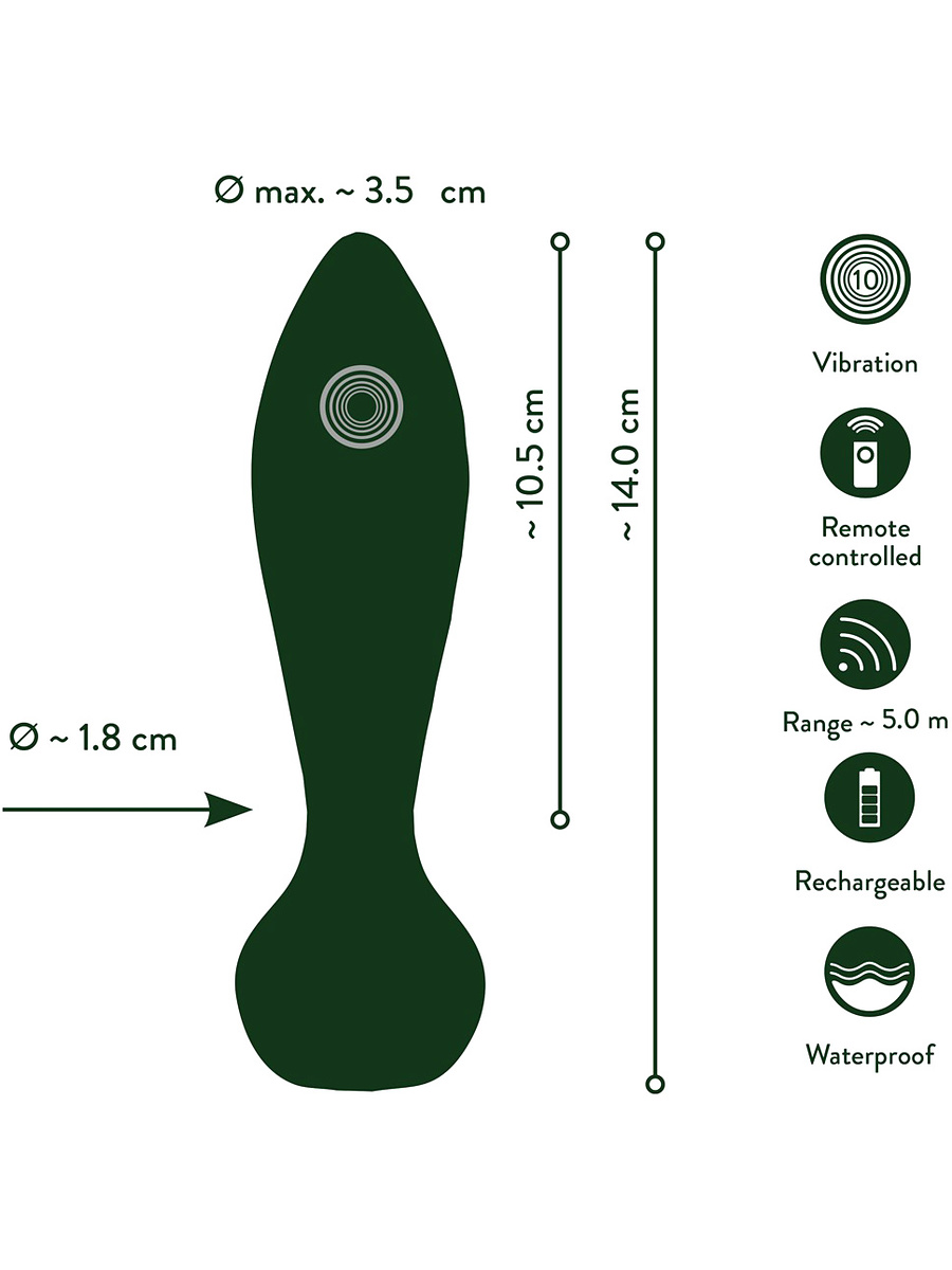 This is a luxurious butt plug with powerful vibrations for deep anal stimulation. Despite its strong vibrations, it vibrates quietly and can therefore be worn discreetly.