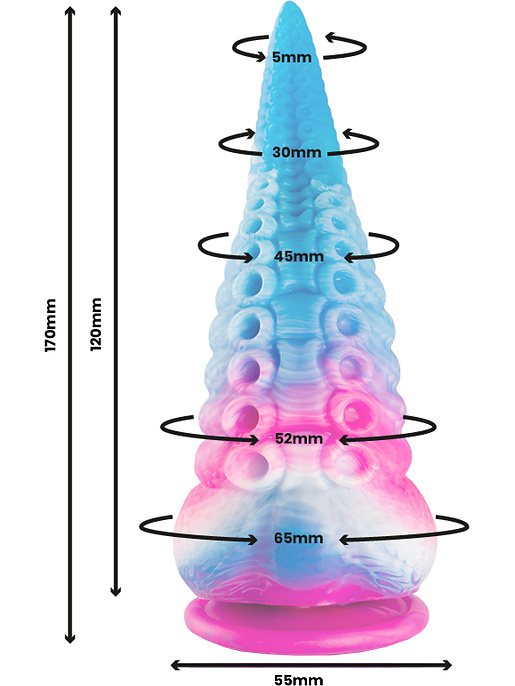 Phorcys is a powerful tentacle dildo that lets you explore the depths of pleasure. The dildo has a tapered design that quickly expands for a fulfilling feeling. It has double rows of small suction cups on the shaft and circular ridges run around it, which provide an extra intense stimulation. With bold colors that capture the essence of Greek legends, Phorcys will take you to a new world of satisfaction.