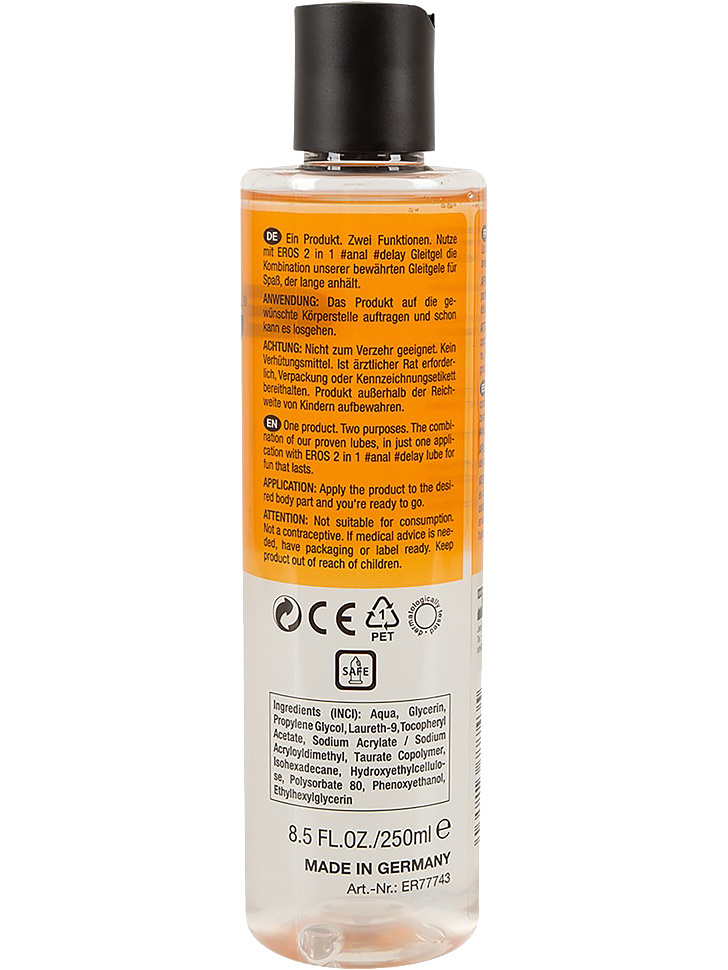 Eros 2in1 Water-based Lubricant, Anal & Delay, 250 ml