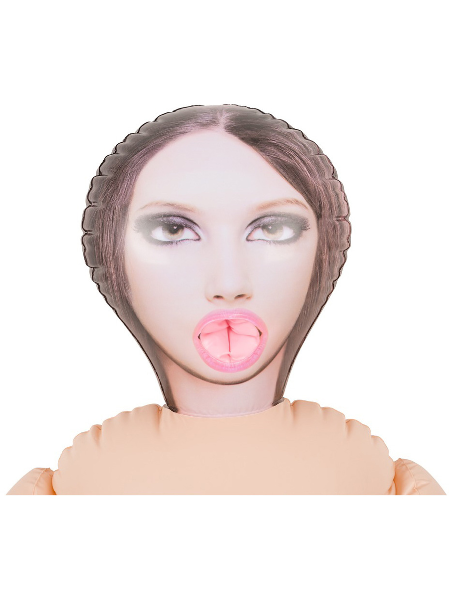 The doll measures 165 cm in height, featuring full breasts with firm nipples and an open mouth perfect for oral play. The tight anal opening is always ready for penetration, providing a snug and pleasurable sensation. A detachable 21 cm dildo (4 cm in diameter) is included and easily attaches to the front using a Velcro-strap. The dildo also has a suction base, allowing for separate use if desired.