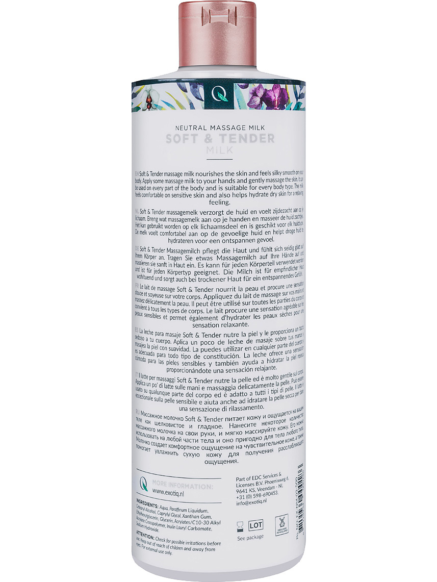 Soft & Tender Massage Milk from Exotiq cares for the skin and feels silky smooth on the body. It is perfect for soothing and relaxing massage-moments.