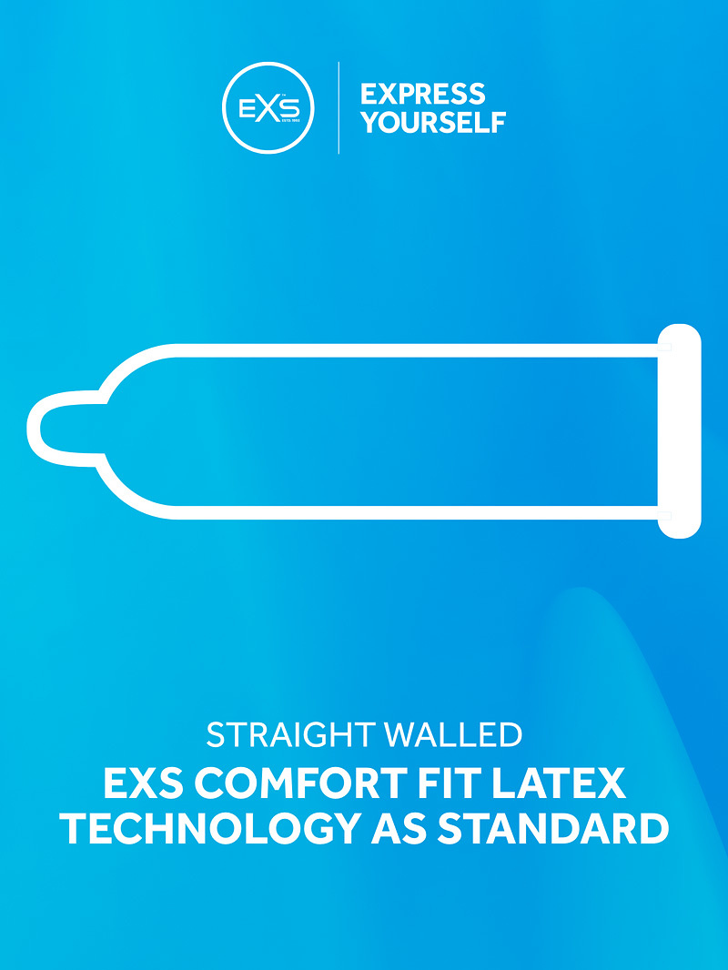 EXS-condoms are made of high-quality latex and treated with lubricants for reduced friction and a more pleasant feeling. The condoms have no latex-smell, are easy to put on and extremely comfortable to wear. They are also vegan-friendly and of course electronically tested for extra safety.