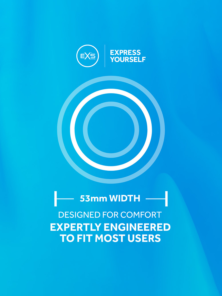 EXS condoms are made of high-quality latex and treated with lubricants for reduced friction and a more pleasant feeling. The condoms have a minimal latex smell, are easy to put on and extremely comfortable to wear. They are also vegan-friendly and of course electronically tested for extra safety.