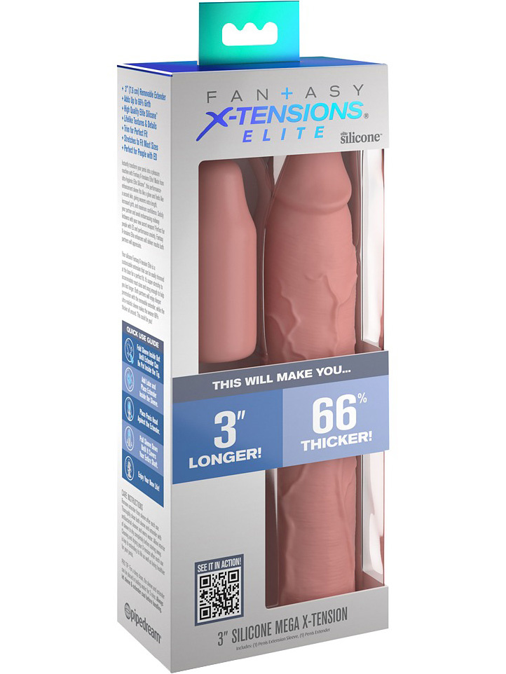 Instantly transform your penis into a pleasure-machine with Fantasy X-Tension Elite. This performance-enhancing penis sleeve is made of ultra-hygienic Elite silicone, fits like a glove and feels like a second skin. It gives the wearer extra length, increased girth and maximum confidence. Satisfy your partner to the max with your new secret weapon!