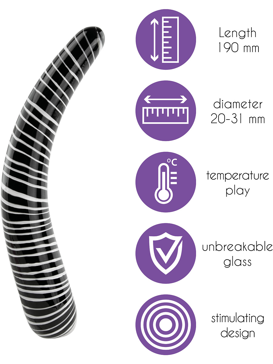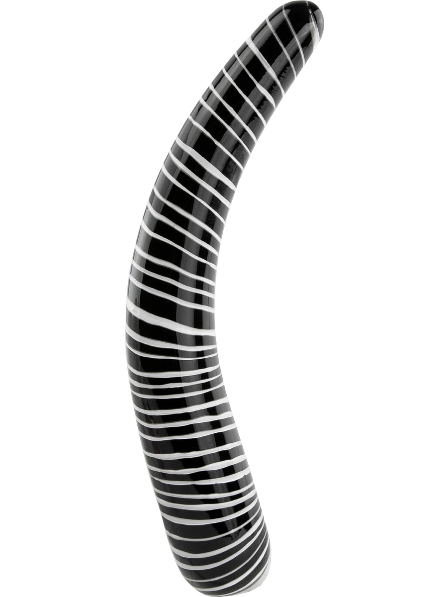 Dark Desire is a glass dildo with delicious patterns and a curved, stimulating design that targets your g-spot for magnificent pleasure. The ends have different thicknesses and you choose which end will stimulate your insides.