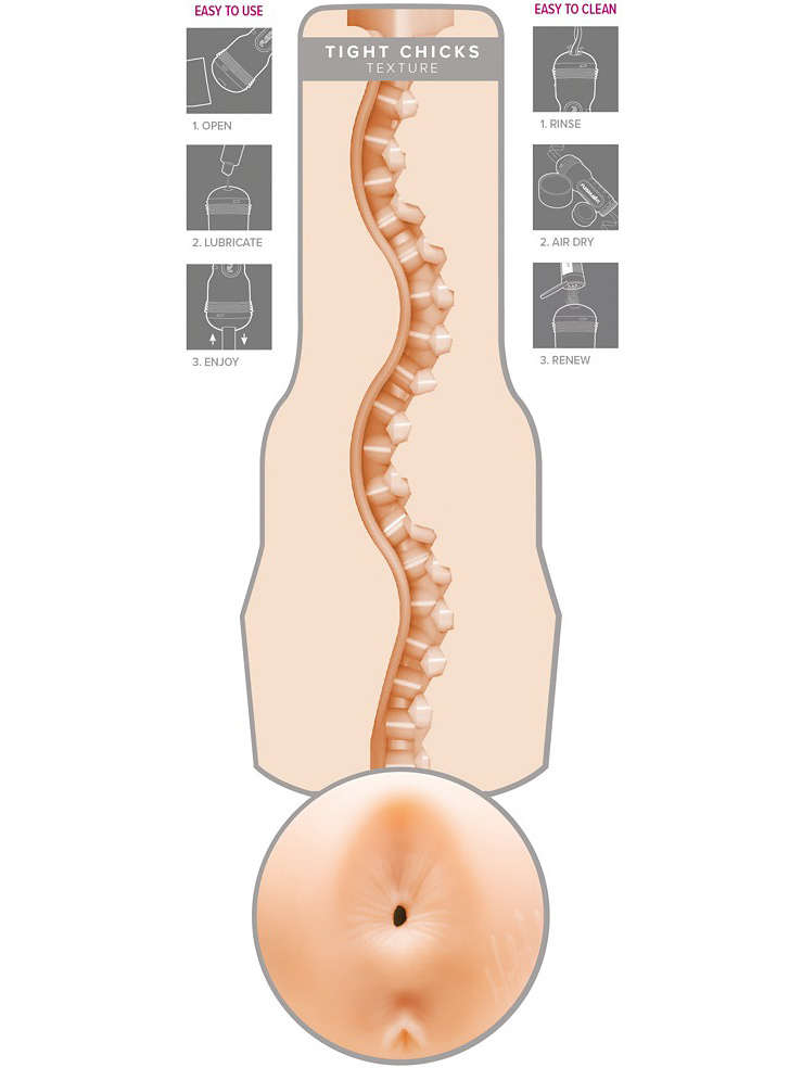 You won't be able to hide how much you'll love one of Fleshlight's craziest structures ever. The Tight Chicks-texture is like a roller coaster with intense stimulation beads and rows of shocks. You will definitely want to penetrate every inch until all the secrets are revealed. Tight Chicks is like a pleasure-ride with many happy endings.