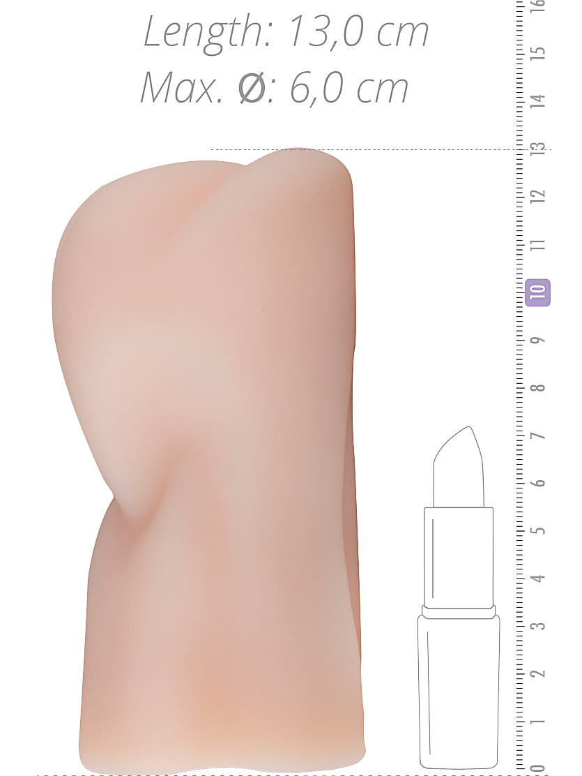 It is made of soft and flexible TPR-material that gives a realistic feeling and follows your movements during penetration (min. diameter - 1 cm. max. diameter - 6 cm). Grip tighter for a tighter, more intense sensation.