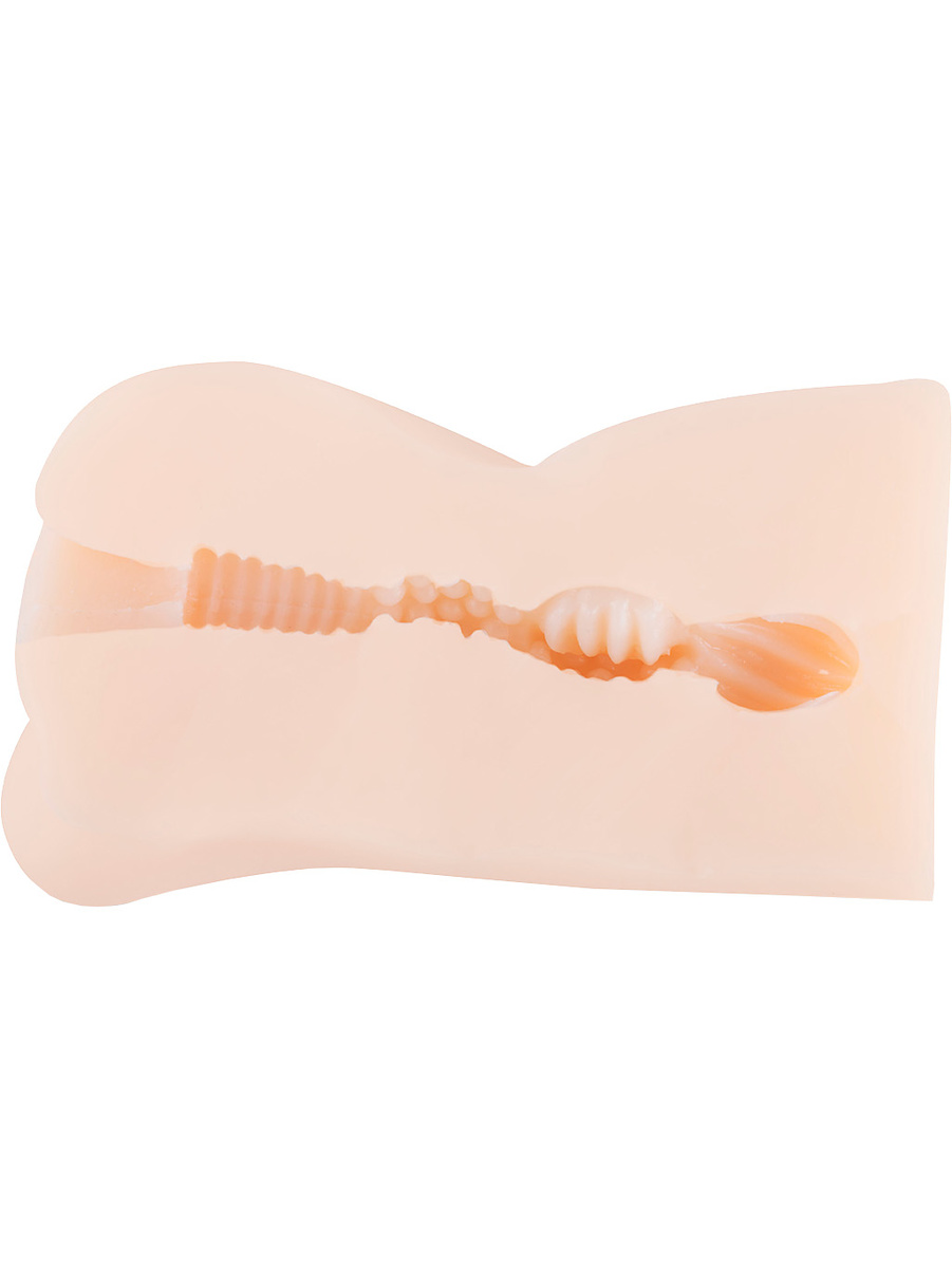 The masturbator has a lifelike design with an opening that is shaped like a realistic vagina, silky feel and a textured tunnel with stimulating knobs and grooves that intensively massage your penis as you penetrate it. Use water-based lubricant with this masturbator for the best possible sensation.
