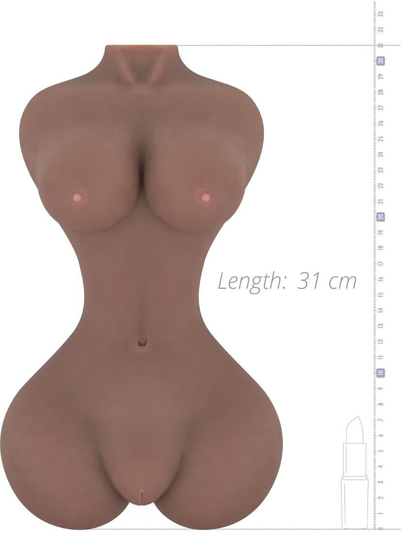 The masturbator has a realistic design with a plump butt, narrow waist and lovely breasts. You choose for yourself whether you want to penetrate it vaginally or anally. On the inside of the openings there is a knobby texture that provides extra stimulation during penetration.
