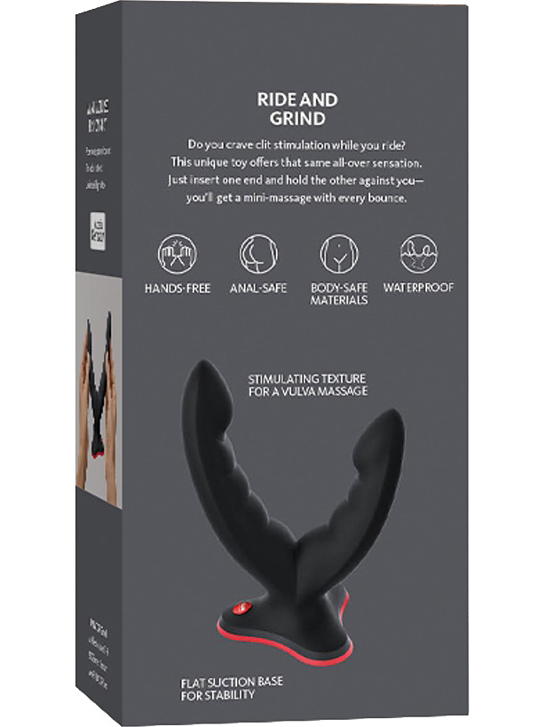 Thanks to its ribbed structure and U-shaped design, RYDE massages your vulva, clitoris and anus as you straddle it and rub. You can also use one end as a handle and the other as a regular dildo. With a partner, you can also use our Ryde to experiment with double penetration.