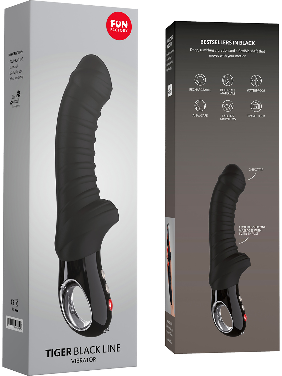 Fun factory has now come up with the collection "Black Line" where their bestsellers are now also available in a sophisticated black color. Tiger is no exception. Experience Tiger in a pure black color, all to match your deepest and darkest desires. In addition, black matches everything.