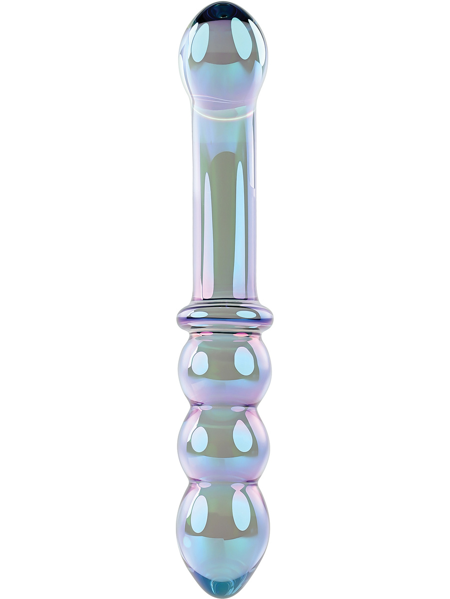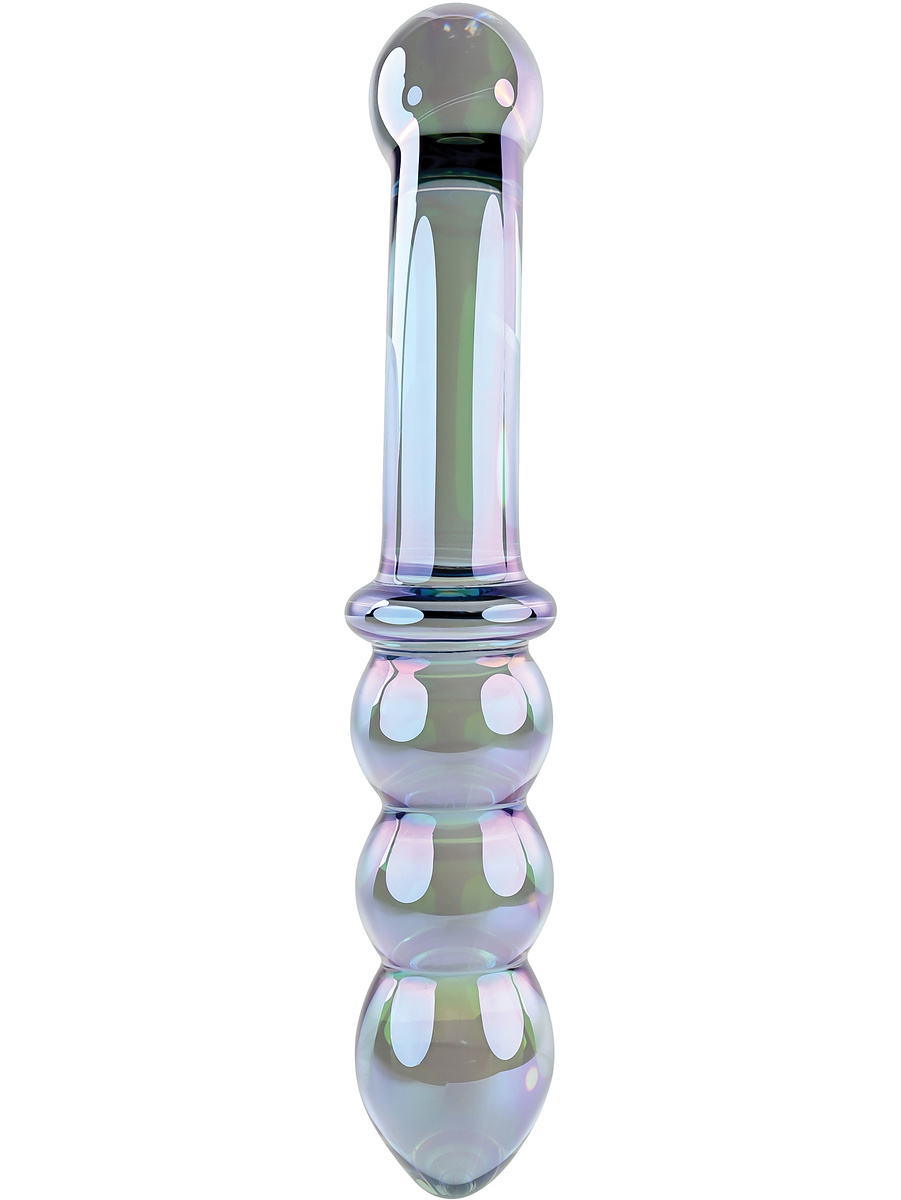 Lustrous Galaxy is an elegant glass anal dildo that shifts in blue, green and purple while allowing you to discover total pleasure. With two different ends, you have the opportunity to experience great variety.