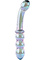 Explore the slightly curved end with a marked tip that targets sensitive spots or enjoy the ball-shaped end with your targeted, tapered tip. A ring between the two stems gives you full control so you can focus on the pleasure that only glass can deliver.