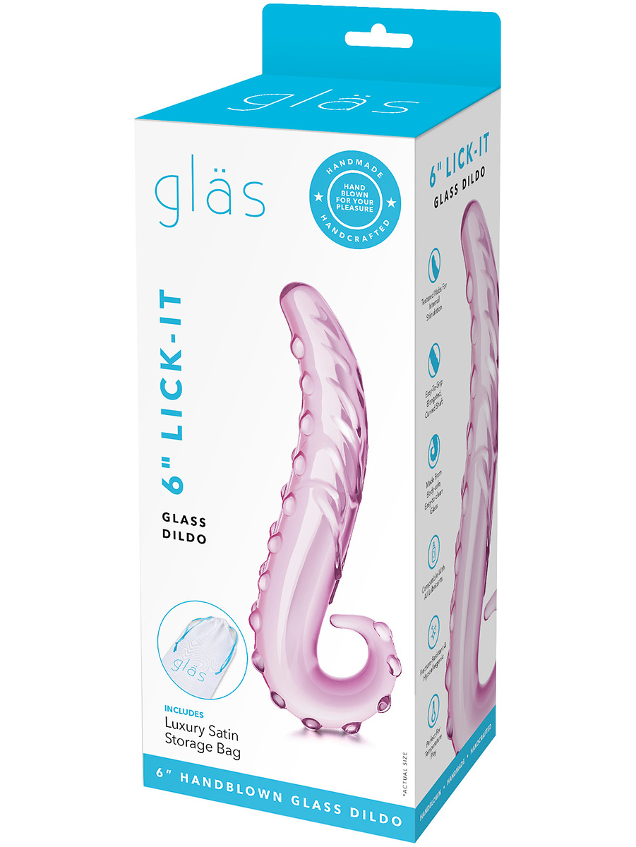 Lick It is a unique glass dildo with a tentacle-like design that satisfies your most alien fantasies with a curved tongue and varying textures. The handle at the far end provides a perfect grip during the stimulation.