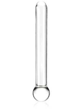 The smooth surface and straight shaft make this dildo ideal for controlled penetration and targeted stimulation, while the decorative glass ball at the base functions both as a grip and a visual accent.