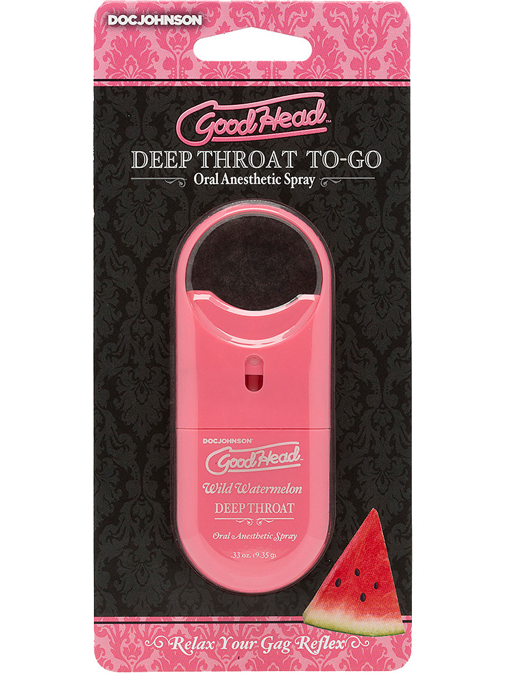 GoodHead Deep Throat Spray is a mildly numbing spray for pleasant blowjobs at home or on the go. The spray relaxes your throat muscles so you can give your partner a deep blow without discomfort. The sweet watermelon flavor makes the experience even better!