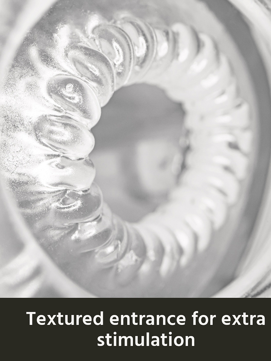 Feel the soft pressure at the opening as the Lotus gently embraces your penis with the wavy pattern. The curves and strategically placed ridges on the inside massage and stimulate the glans while the opening comfortably grips the base of your penis. Don't forget to use water-based lubricant.