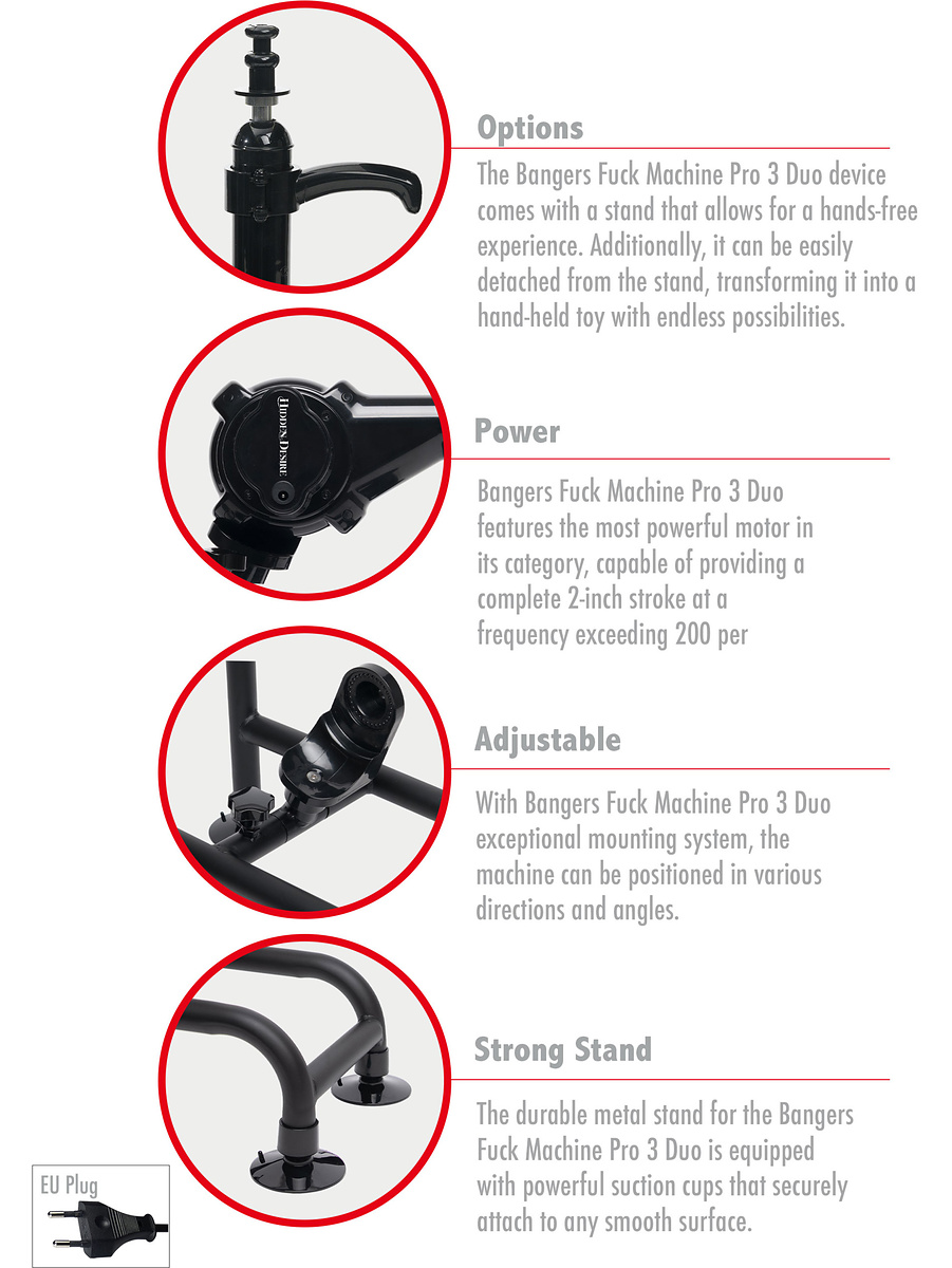 Looking for the perfect sex machine? Bangers Fuck Machine Pro 3 Duo delivers powerful penetration for intense play. The best thing about this sex machine is that it is very compact, which makes it easy to store and quickly take out for use. Despite its practical size, it has the same functions and power as full-size models. With suction cups on the legs, it stands firmly against the flat surface.