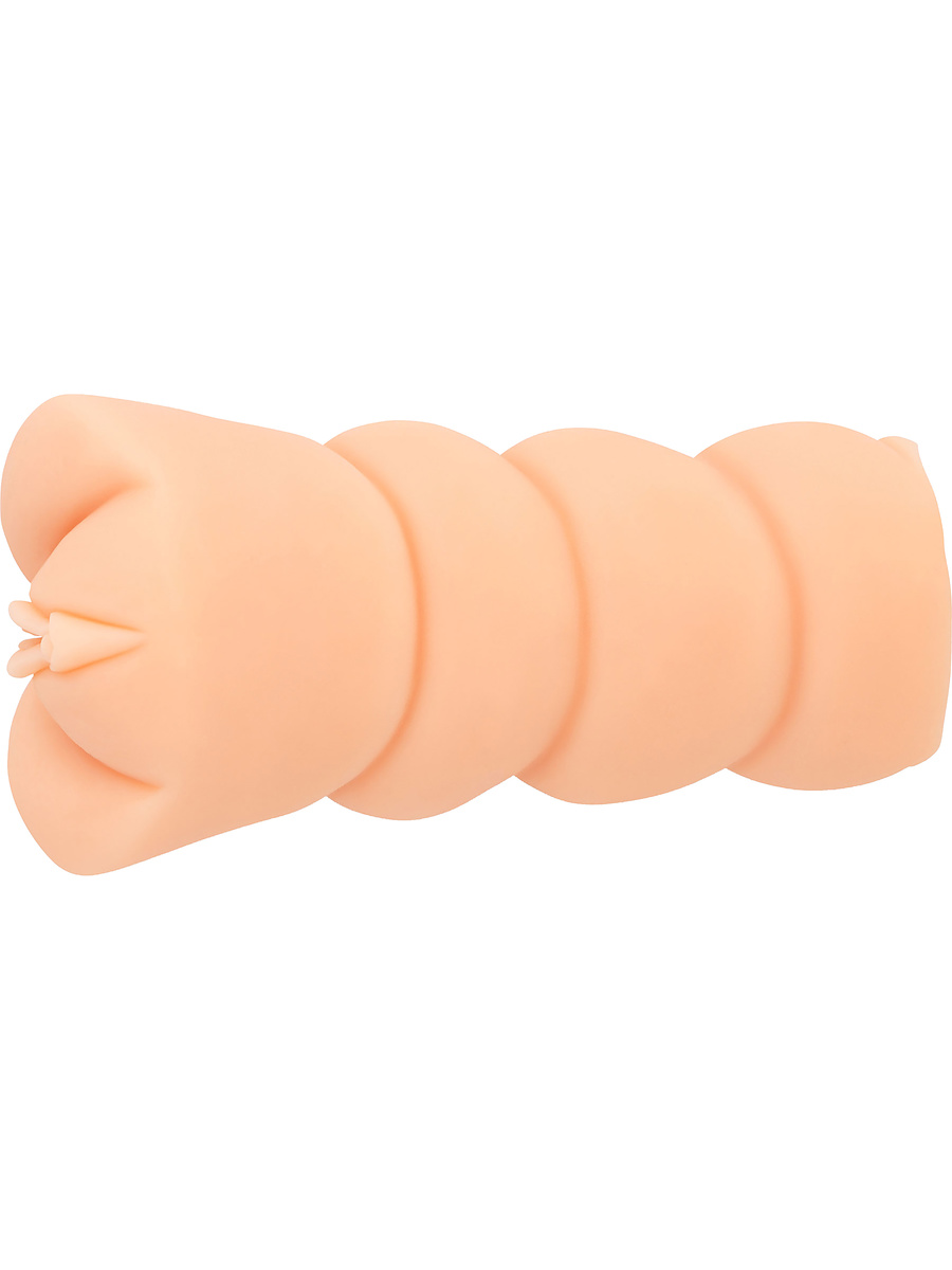 The opening is shaped like a realistic vagina with inviting labia while the inside is filled with a stimulating texture. The outside has delicious feminine folds and gives you a perfect grip where you can press with your hand to make it tighter and the feeling more intense.